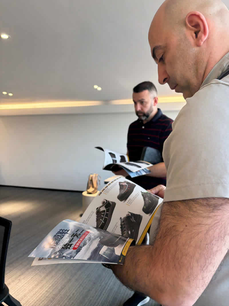 Two customers from Sweden visited our showroom for an on-site evaluation of our safety shoes. During the visit, they personally tested the products and immediately recognized their exceptional quality. They commented that the shoes are highly durable and well-suited for the Swedish market, expressing strong interest in our offerings.